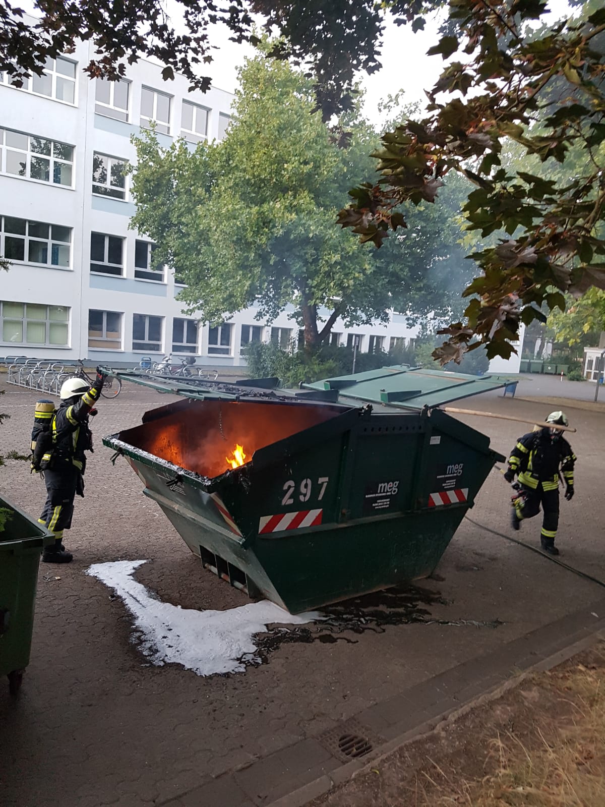 Brennen Müllcontainer, drohen auf Gebäude überzugreifen |